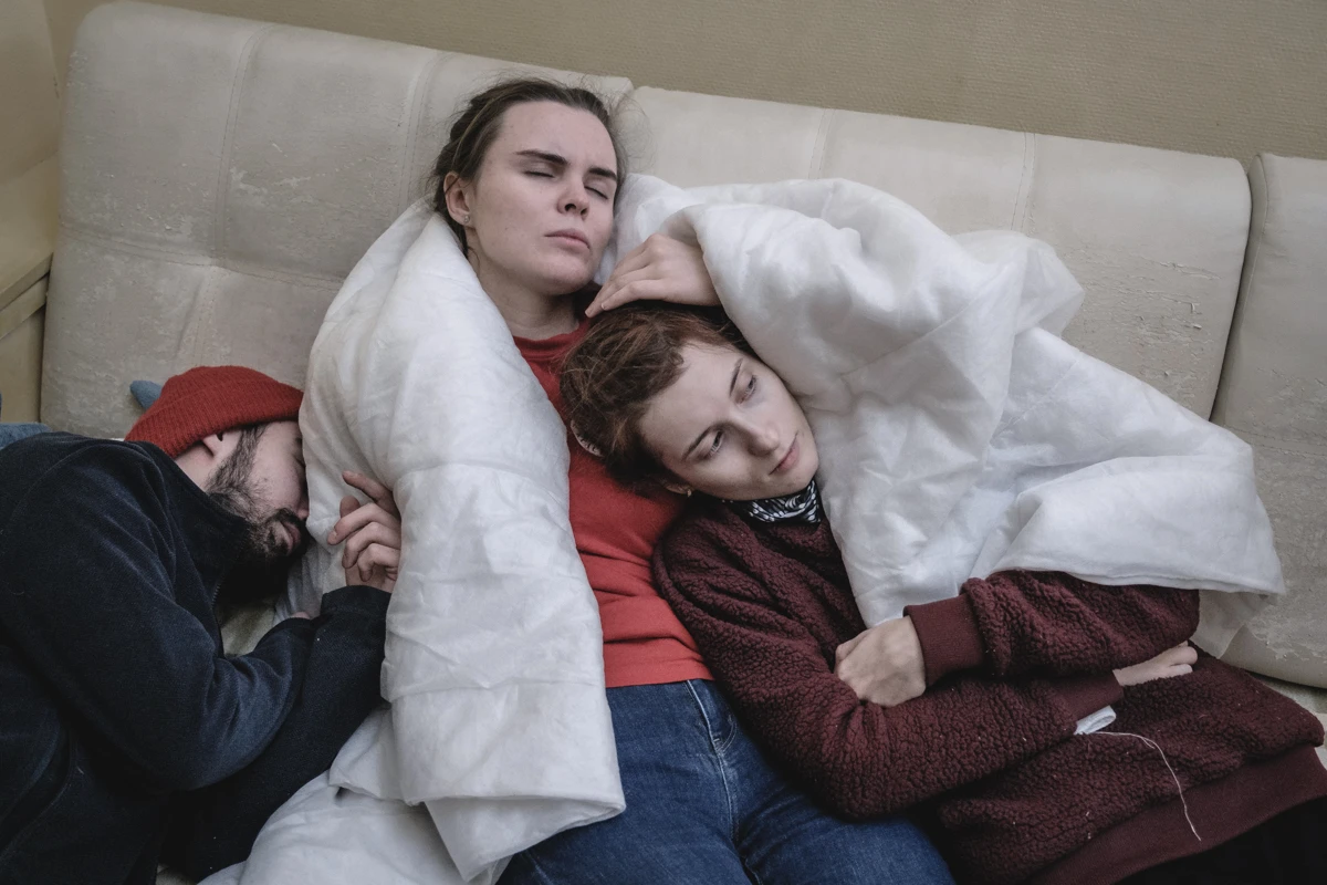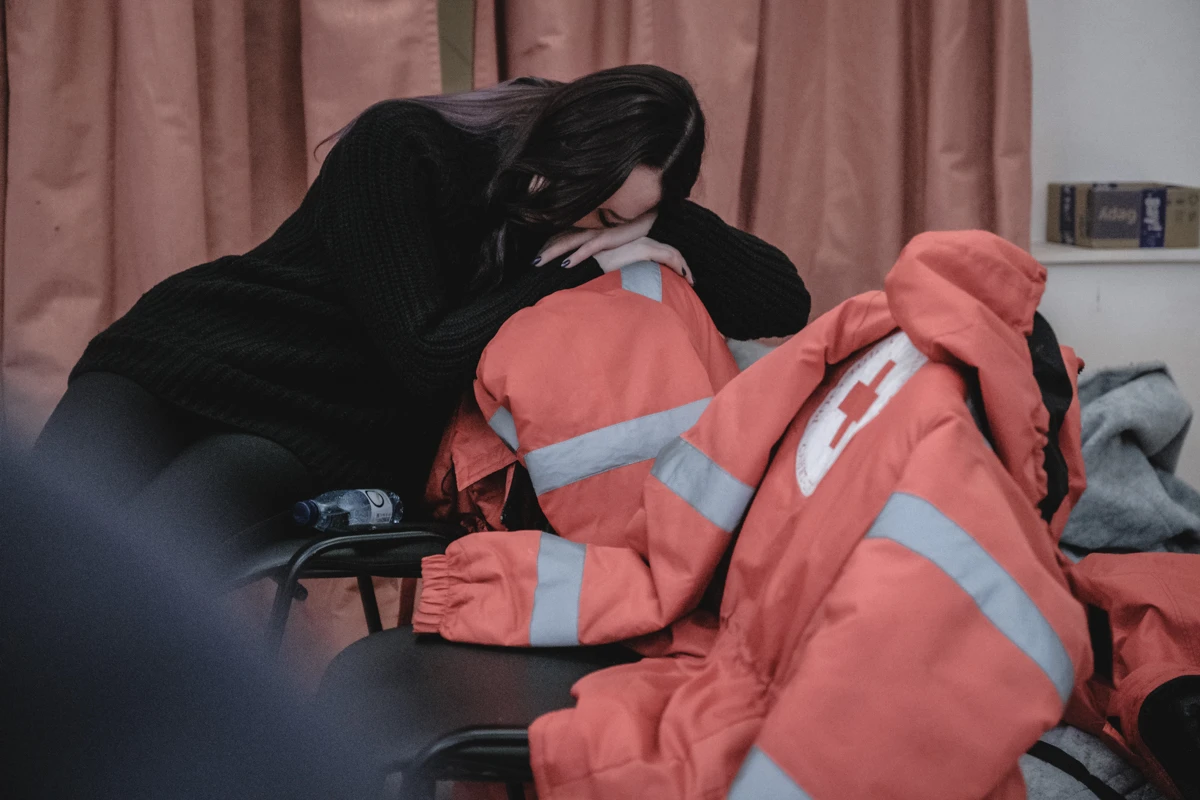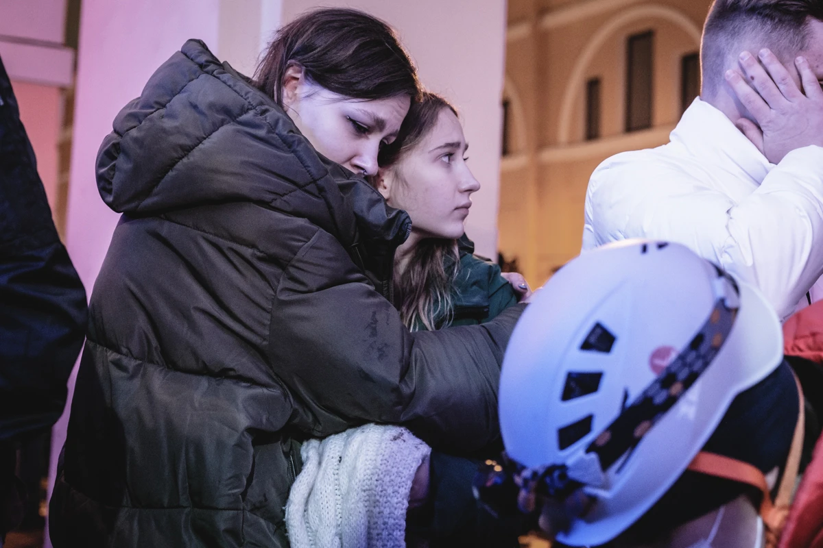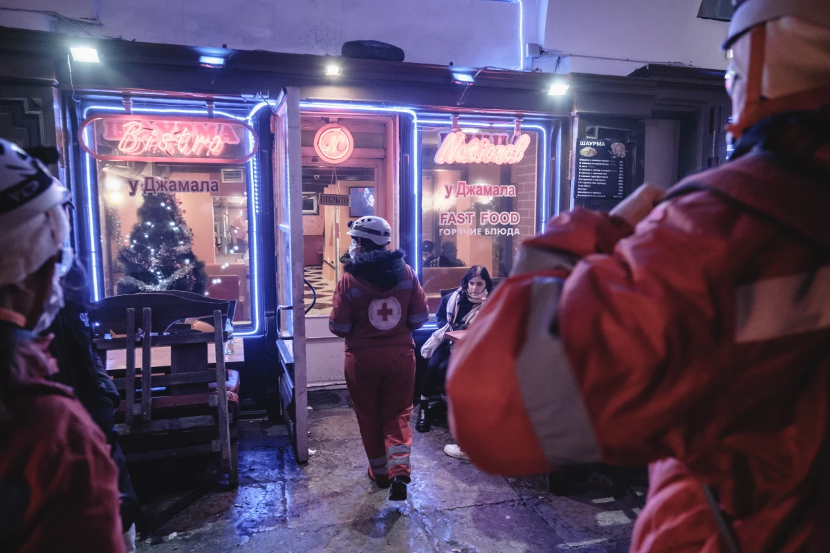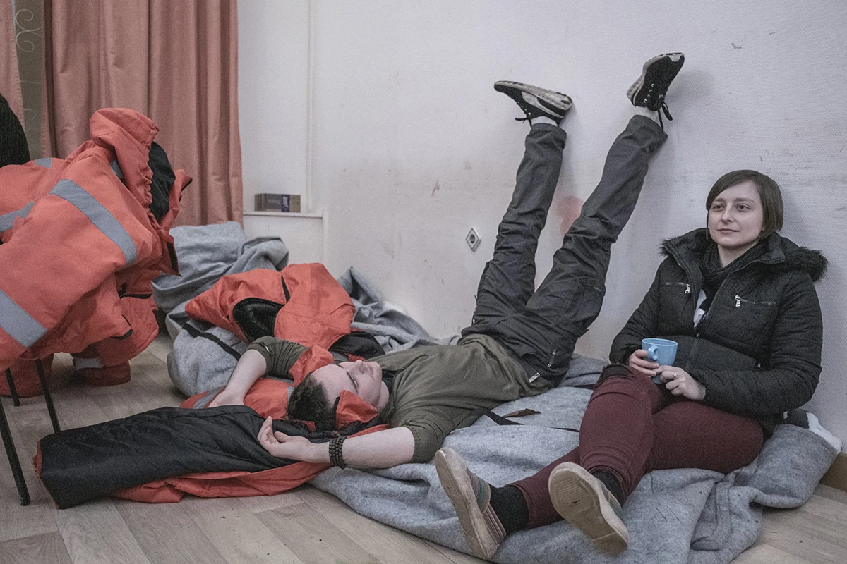 Двадцать минут ребята отдыхают: снимают каски, достают термос, проверяют соцсети, поздравляют близких с праздником. Им на смену из офиса Красного Креста спешат Альма и Энкил. Для них это не первое дежурство на Думской.
