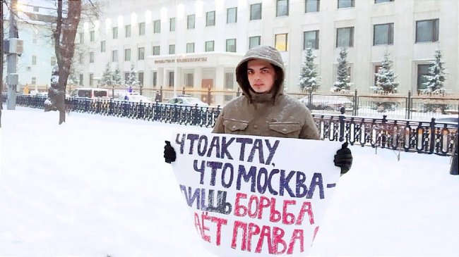 В Москве полицейские задержали активиста Антона Мальгаждарова из-за одиночного пикета у посольства Казахстана. Об этом ОВД-инфо сообщила девушка задержанного.