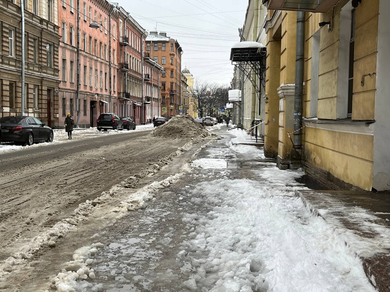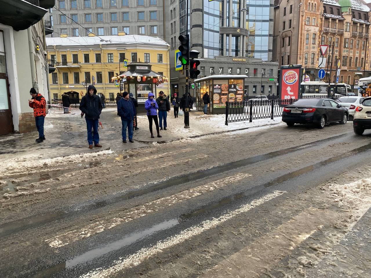 В Петербурге продлен «желтый» уровень опасности. Горожане сообщают о сильной гололедице и слякоти
