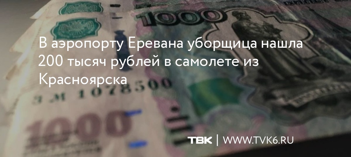 В аэропорту Еревана уборщица нашла 200 тысяч рублей в самолете из Красноярска
