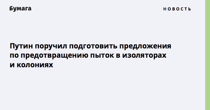 «Проанализировать практику применения уголовно-исполнительного законодательства и при необходимости подготовить предложения, направленные на недопущение применения незаконных методов воздействия к лицам, содержащимся под стражей и осужденным к лишению свободы», — говорится в сообщении, опубликованном на официальном сайте Кремля.