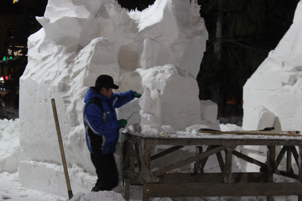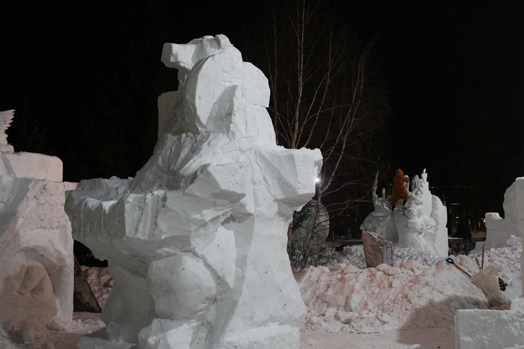 Фестиваль снежной скульптуры начался в Первомайском сквере, передает корреспондент Тайги.инфо.