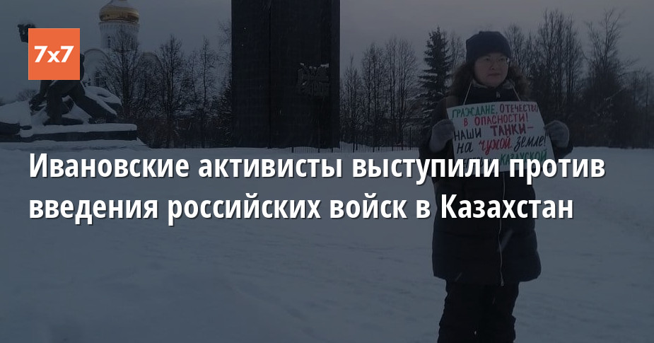 Активистка из Ивановской области Ольга Назаренко встала в одиночный пикет против подавления протестов в Казахстане российскими войсками. Общественники «Бессрочки Иванова» расклеили по всему городу листовки с надписью «Зачем нашим солдатам убивать и умирать на казахской земле?». Ранее российские власти направили в Казахстан ивановских десантников из состава миротворческих сил ОДКБ. Об акциях корреспонденту «7х7» сообщила Ольга Назаренко.