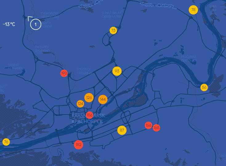 При этом режим НМУ в Красноярске не вводили. Судя по датчикам общественников, наиболее тяжелая ситуация сейчас в Центральном, Ленинском и Свердловском районах. Приложение Минэкологии загрязнений не фиксирует.