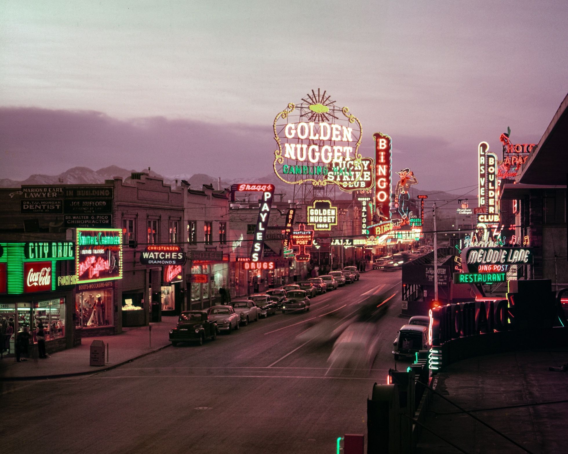 На американском Западе, в Лос-Анджелесе, Лас-Вегасе и других городах неоновая реклама становится неотделимой от города: световые огни не вступают в конфликт с существующей архитектурой и памятниками.