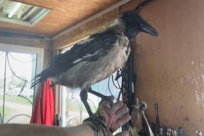 На шиномонтаже в Коломне живут кошка и ворона — бездомных животных приютил работник мастерской. Вот их история