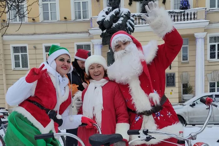 В Петербурге прошел велопарад Дедов Морозов и Снегурочек