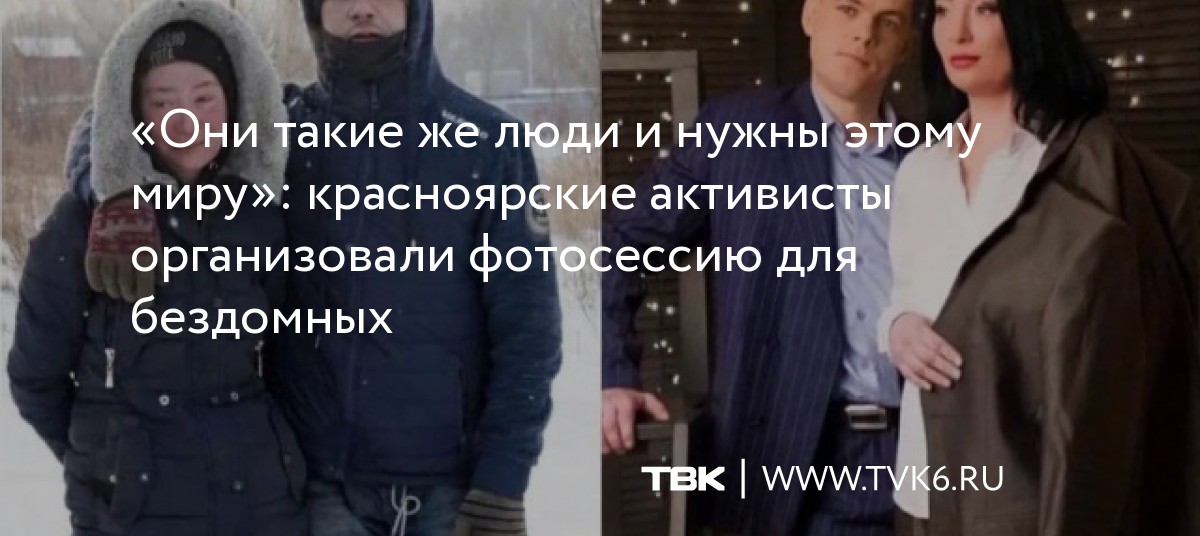 «Мне мои друзья часто говорят, что помогать бездомным – бесполезно, мол, они же не люди. У меня диссонанс возник: как это не люди? Так и появился проект. Мы собрались инициативной группой и решили организовать фотосессию, чтобы показать: бездомные – это такие же люди, как мы. Просто они немного грязные, неумытые и неухоженные. Но это люди в первую очередь. Этим людям нужна помощь и поддержка, они заслуживают нашего внимания. Мимо них проходить нельзя. Так и родилась эта идея. Хотелось на резонансе показать, что вот человек бездомный грязный, но если его помыть, причесать, привести в порядок, то он похож на всех людей, на всех жителей Красноярка».