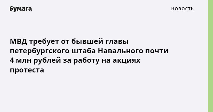 ГУ МВД по Петербургу потребовало от бывшей главы петербургского штаба Навального Ирины Фатьяновой почти 4 миллиона рублей. В эту сумму полиция оценила ущерб, нанесенный ведомству в результате январских митингов 2021 года.