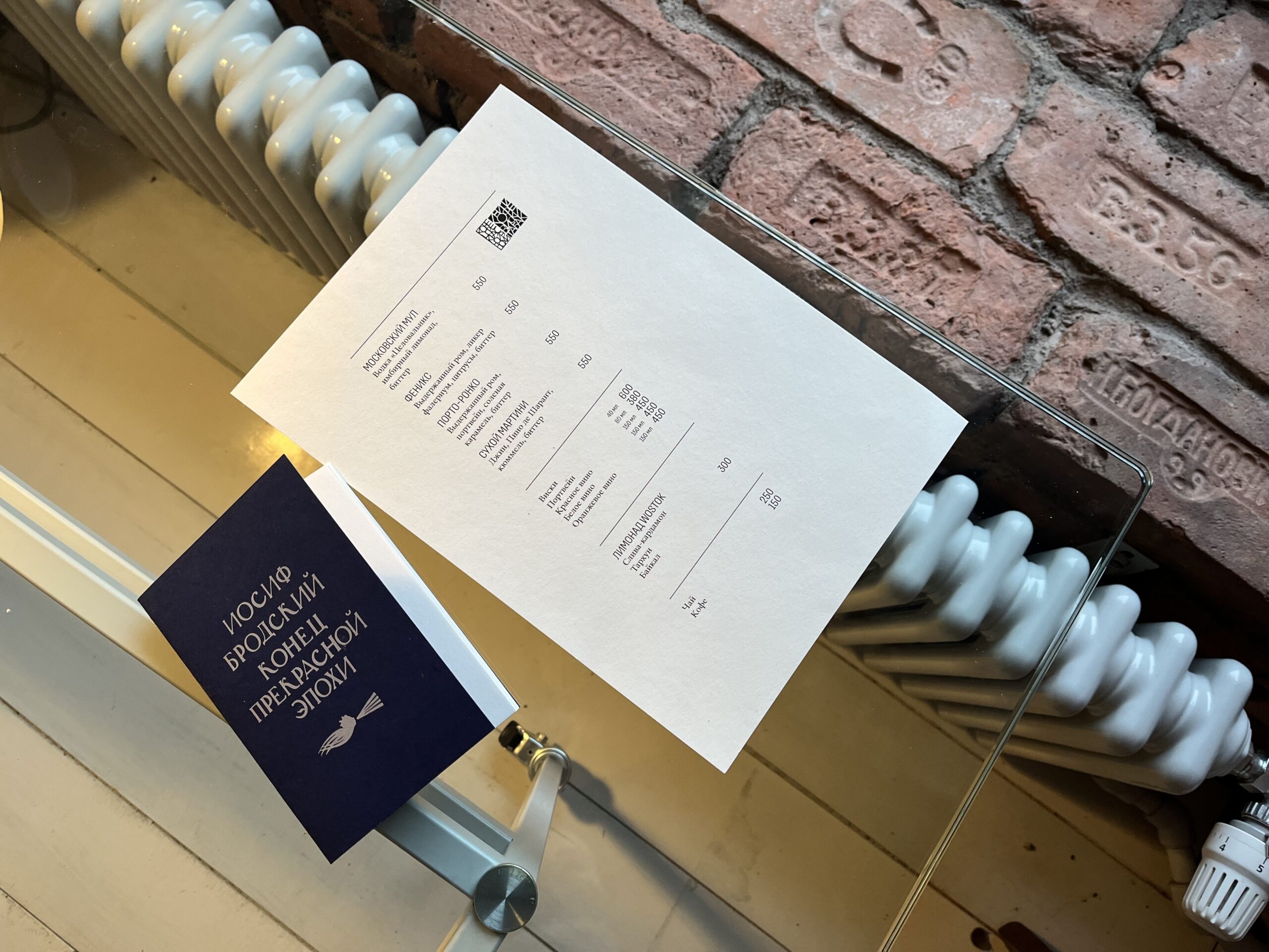 В зоне бара можно выпить чаю или кофе, один из четырех коктейлей от команды El Copitas Bar, а также вино, лимонады и виски, который предпочитал Бродский.