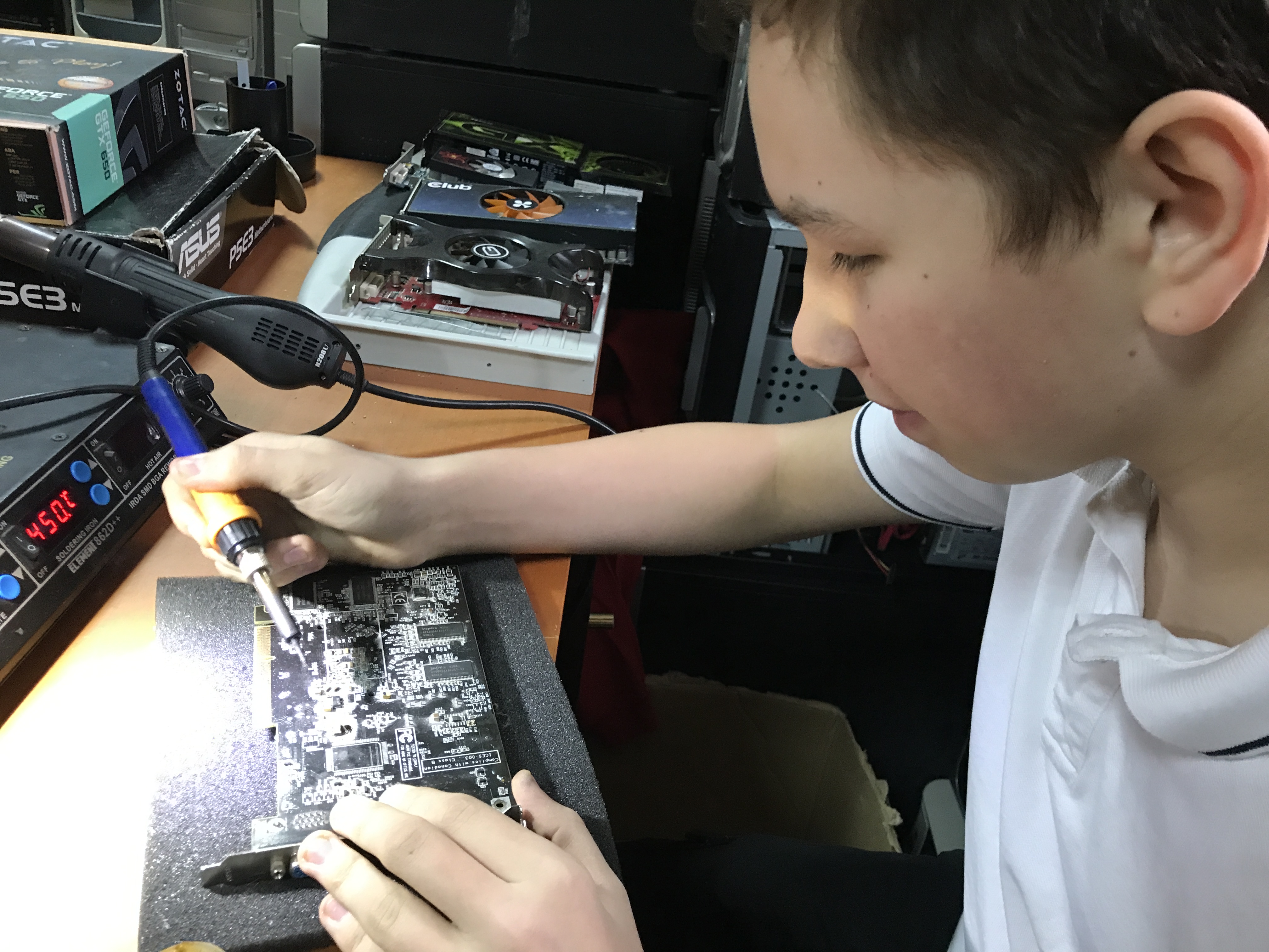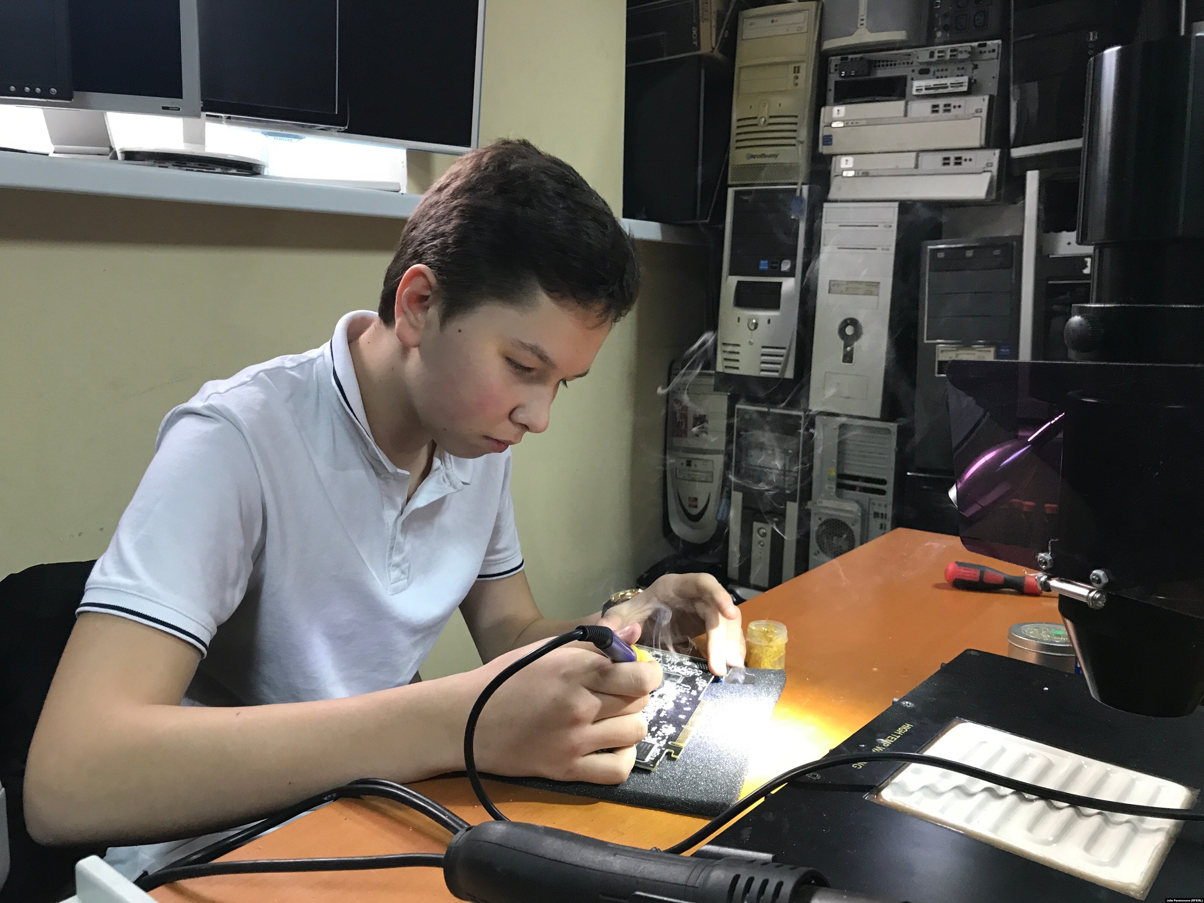 – Идея была папина. В один вечер мы сидели дома за двумя компьютерами, я смотрел пайку материнской платы на ютьюбе, и папа предложил создать проект, где я буду ремонтировать компьютеры и отдавать многодетным. Я подумал, что это так себе идея, и папа предложил поспорить, смогу ли, – говорит Сергей.