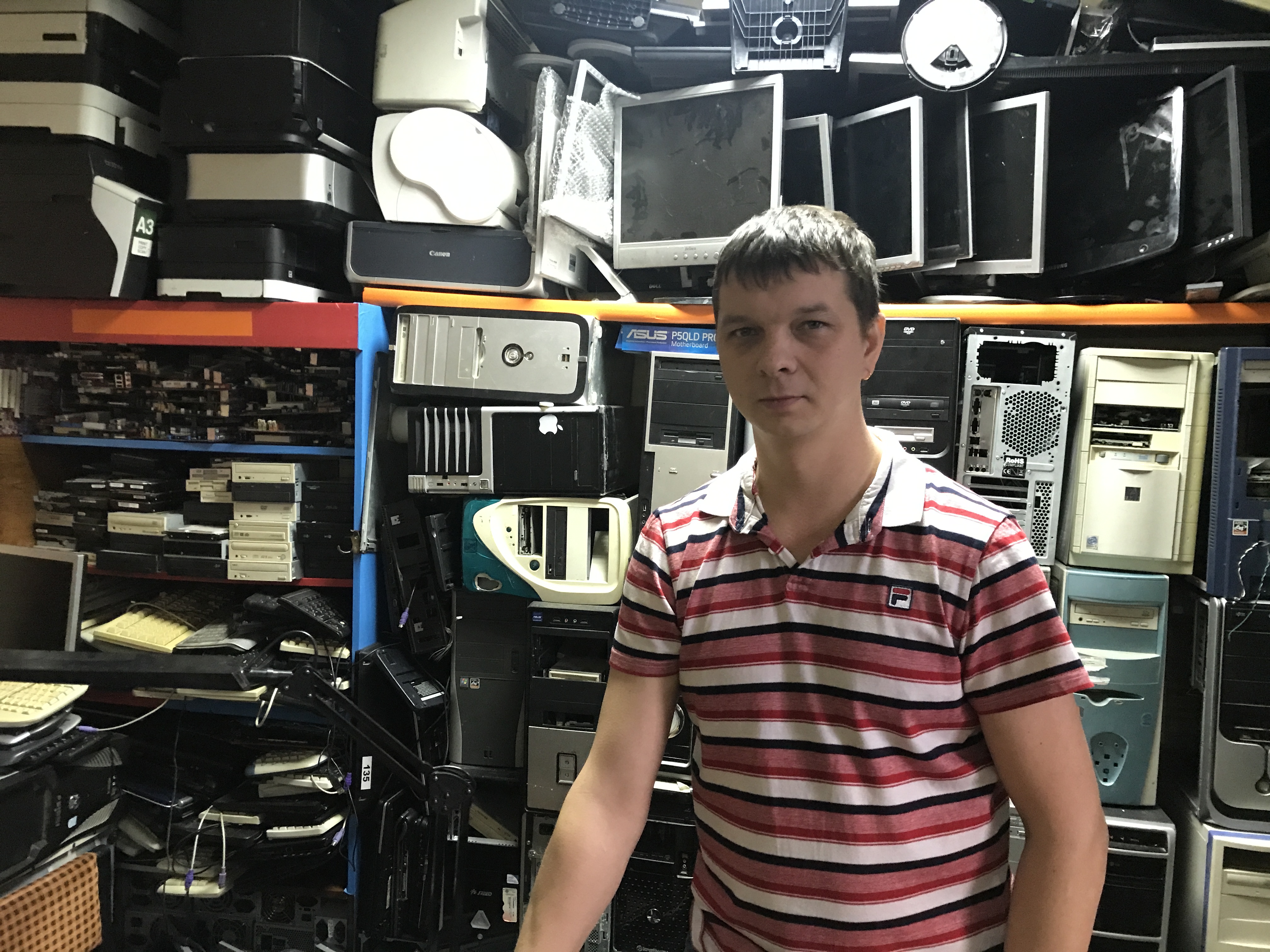 – Мы насчитали в прошлом году две с половиной тонны. Сейчас уже наверное четыре с половиной, – говорит Сергей. – Кто-то сам привозит, кто-то отдает со знакомыми. Сейчас мы стали брать фургончик у дедушки, так как наш микроавтобус в ремонте, ездим, забираем. Обычно отдают компьютеры, которые уже невозможно вытянуть на нормальный уровень. Или если с пятого этажа выкинул. Игроман в Зеленоградске был – там компьютер больше миллиона стоит. Психанул и выкинул. Сказал: ну если сможете что-то собрать…