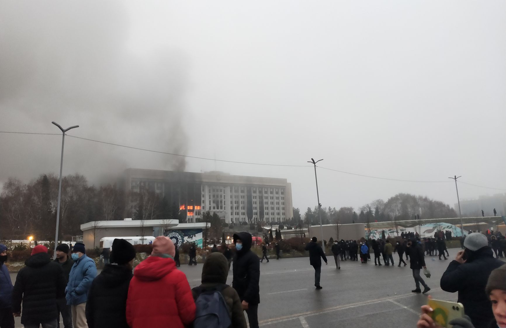 5 января протестующие захватили международный аэропорт в Алматы. Было подожжено здание филиала национального государственного телеканала «Казахстан». В Алматы протестующие захватили здание Комитета национальной безопасности и получили доступ к содержимому оружейной комнаты здания. Резиденция президента в Алматы была разгромлена и подожжена.