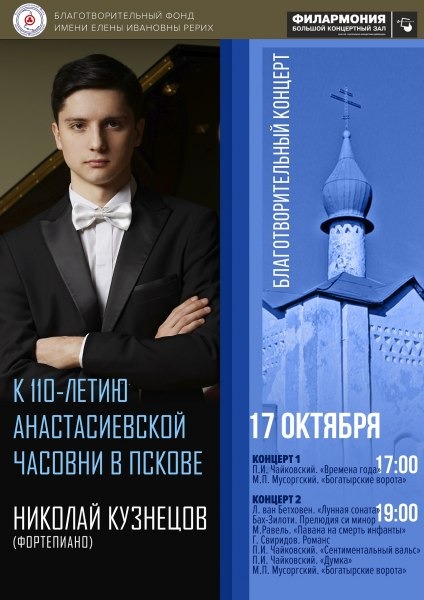В Пскове пройдёт концерт в поддержку Анастасиевской часовни: как сообщили в комитете по культуре Псковской области, 30 января в БКЗ Псковской филармонии выступит именитый пианист, лауреат международных конкурсов, обладатель одной из самых престижных музыкальных наград - гран-при «Monte Carlo Piano Masters» (Монако, 2021) Николай Кузнецов.