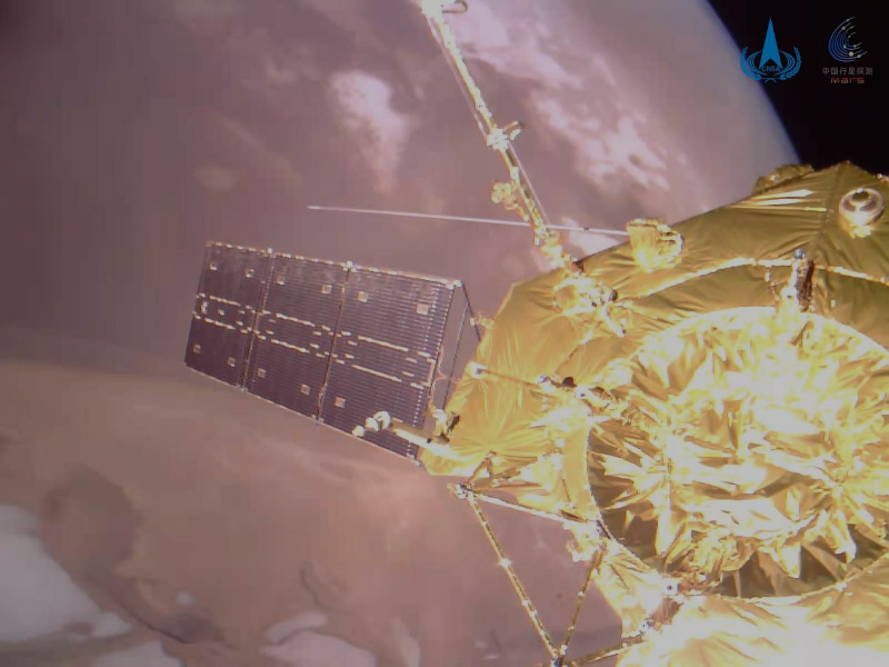 Фотографии орбитального зонда на фоне Марса сделала специальная отделяемая от аппарата камера. «Тяньвэнь-1» стартовал летом 2020 года. Это первый проект Китая по исследованию Марса автоматическими механизмами.