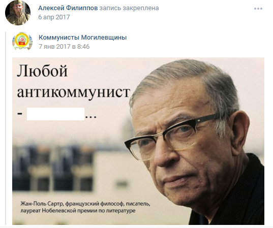 На коммуниста завели административное дело из-за цитаты Сартра во «ВКонтакте» — по арестной статье