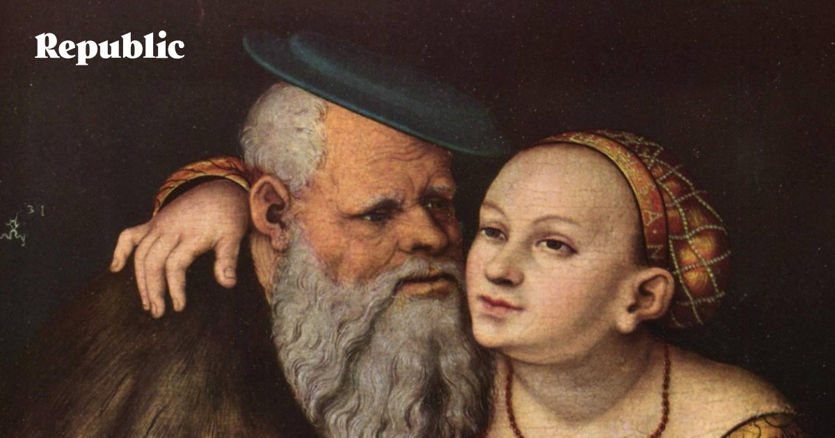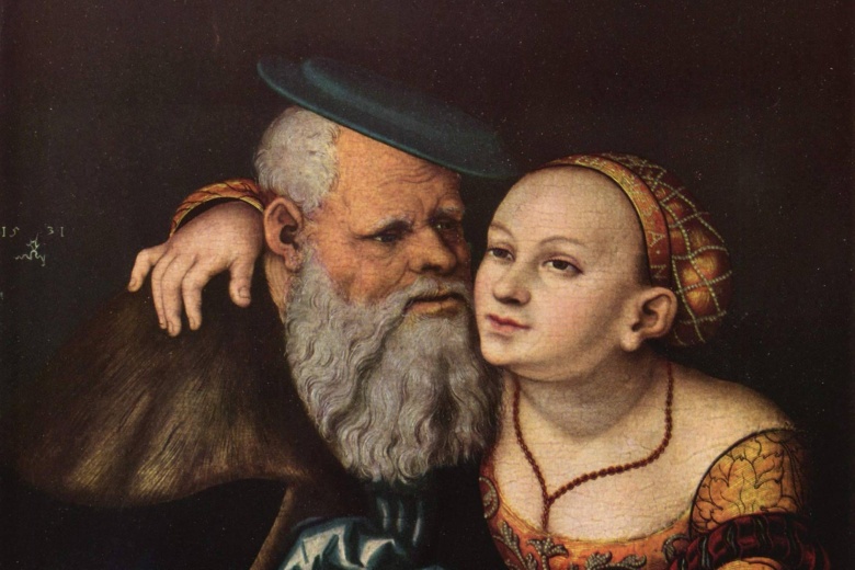 Фрагмент картины "Влюбленный старик". Лукас Кранах Старший, 1537