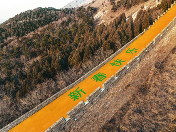 Фото: Гигантский цифровой экран бренда Bottega Veneta на Великой Китайской стене