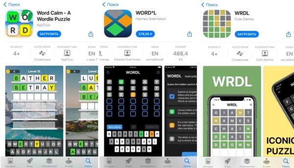 В Google Store такого интереса к игре не наблюдается: журналисты нашли одну копию Wordle в 20 первых результатах по запросу в поиске — и та была далеко не на первом месте в списке, а количество загрузок не превышало и тысячи.