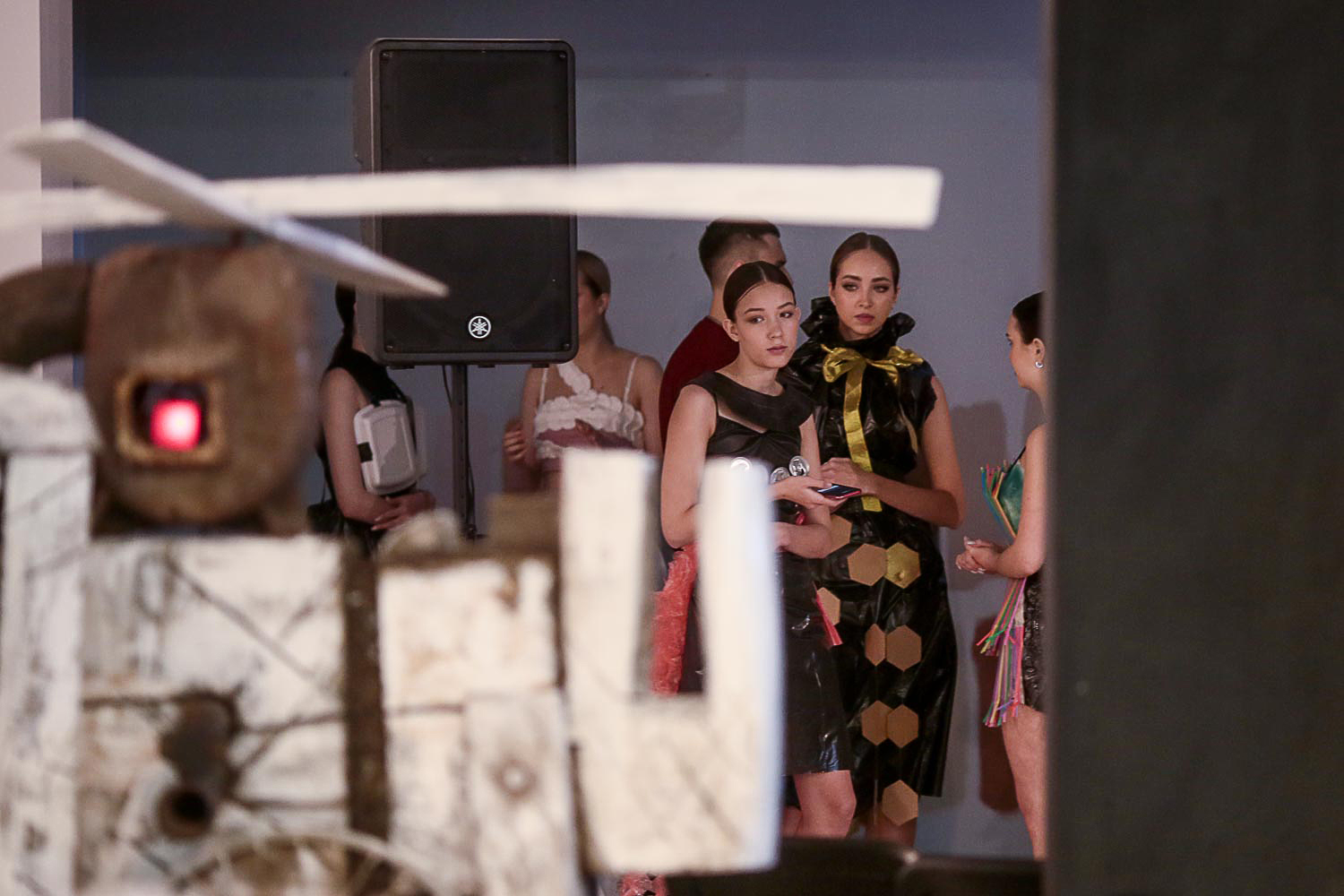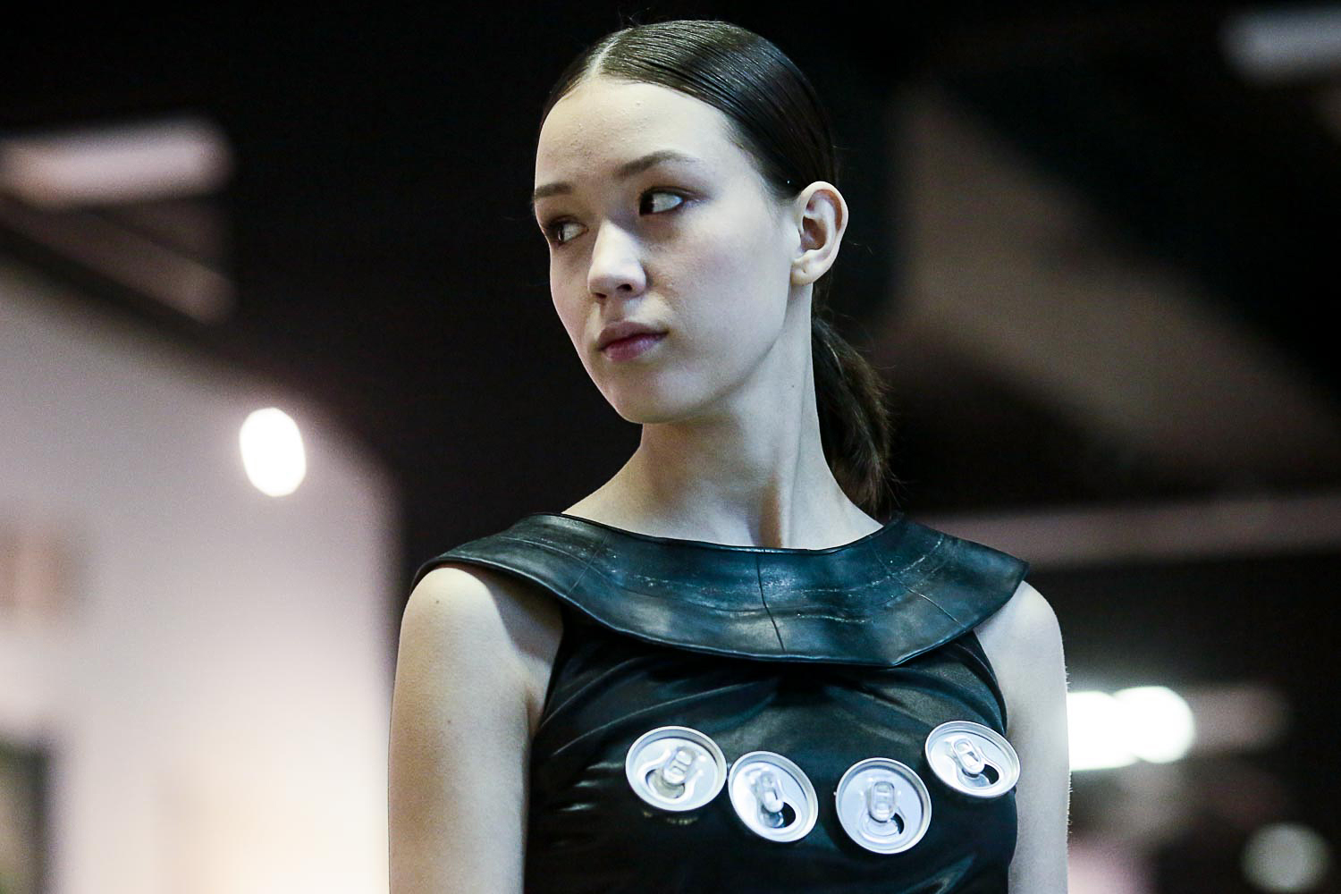 Костюмы в основном выполнены из мусора, который мы собрали [в контейнерах], но какие-то отходы мы из заботы к моделям заменили на аналогичные, чистые, — потому что не весь мусор можно было промыть. Шилось всё строчкой, как в настоящем швейном производстве. Для дефиле мы пригласили настоящих моделей — Ксения Иванова договорилась со своими знакомыми.