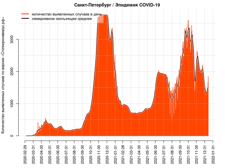 Исследователь также отметил, комментируя официальную статистику: «Растем, судя по всему, уже быстрее, чем падали. В ближайшие дни можно ждать более 2 тысяч новых случаев в день». В четверг, 13 января, зафиксировано 1839 новых случаев.