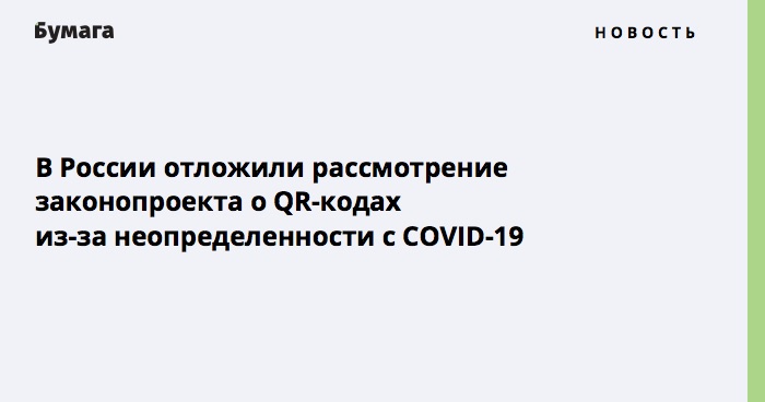 В России отложили рассмотрение законопроекта о QR-кодах из-за неопределенности с COVID-19