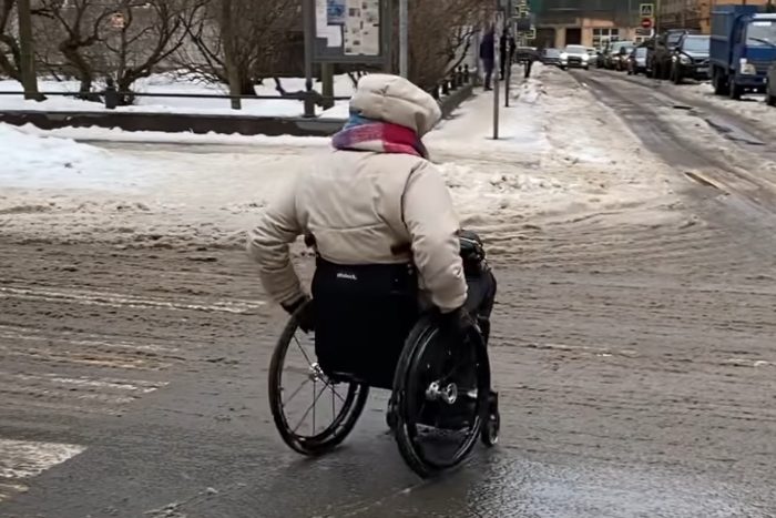 Петербурженка с инвалидностью проехала по улицам на коляске