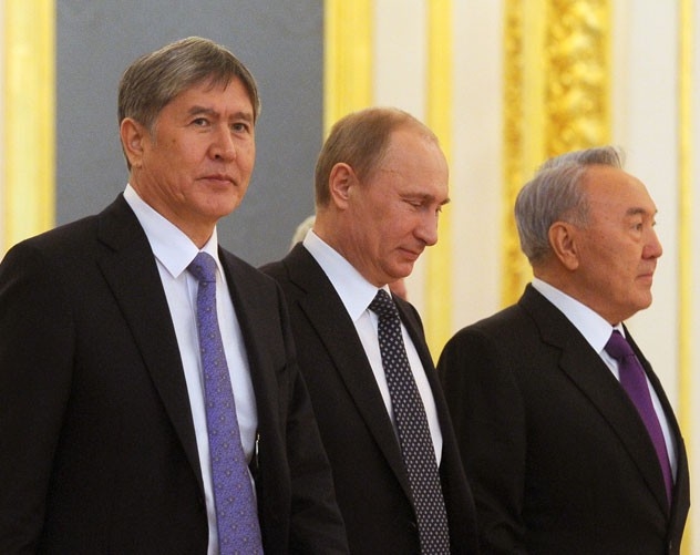 На фото середины 2010-х президент РФ Владимир Путин с тогдашними президентами Киргизии и Казахстана Алмазбеком Атамбаевым и Нурсултаном Назарбаевым. Фото: ИТАР-ТАСС / Валерий Шарифулин