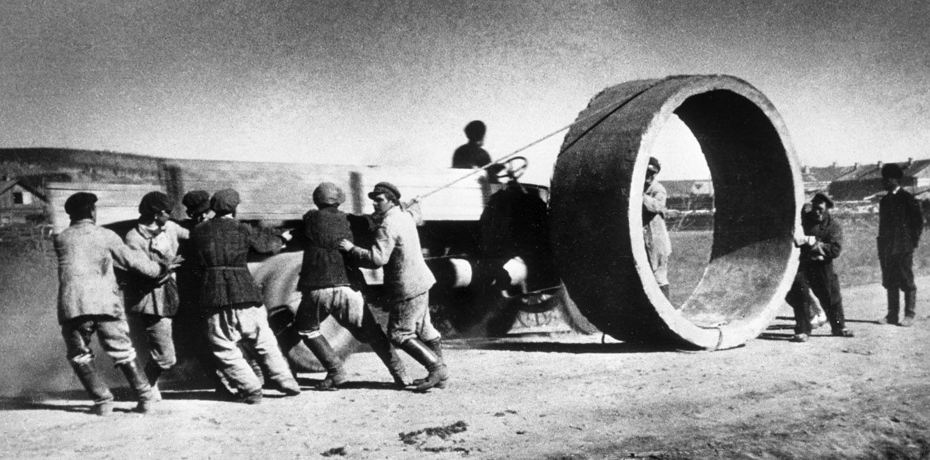 Журнал «СССР на стройке» был основан Максимом Горьким и стал новаторским в смысле формата и стилистики. За выпуск отвечали художники-конструктивисты Александр Родченко и Эль Лисицкий, благодаря которым огромные полосы были заполнены фотоколлажами со смешением общих и крупных планов. Это был одним из способов перейти от традиционного реализма к сложной геометрии, которой отличалась конструктивистская фотография. Другие приемы — диагональный горизонт и ракурсы сверху или снизу.