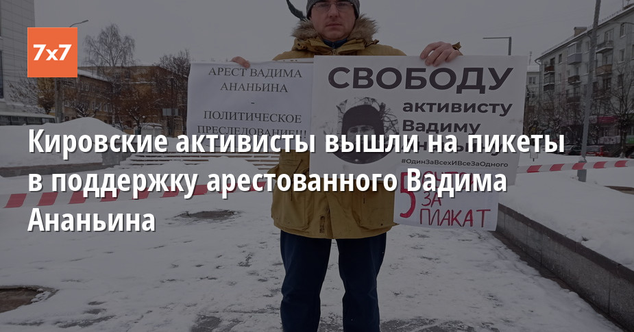 Полицейские 14 января составили на Вадима Ананьина протокол об административном правонарушении за повторное нарушение организации проведения публичного мероприятия (часть 8 статьи 20.2 КоАП РФ). Активист 6 января провел в Кирове массовую акцию против политических репрессий и пыток. Администрация согласовала пикет. Но время акции Ананьин «использовал наглядное средство агитации» — плакат «Нет репрессиям, вводу войск в Казахстане».