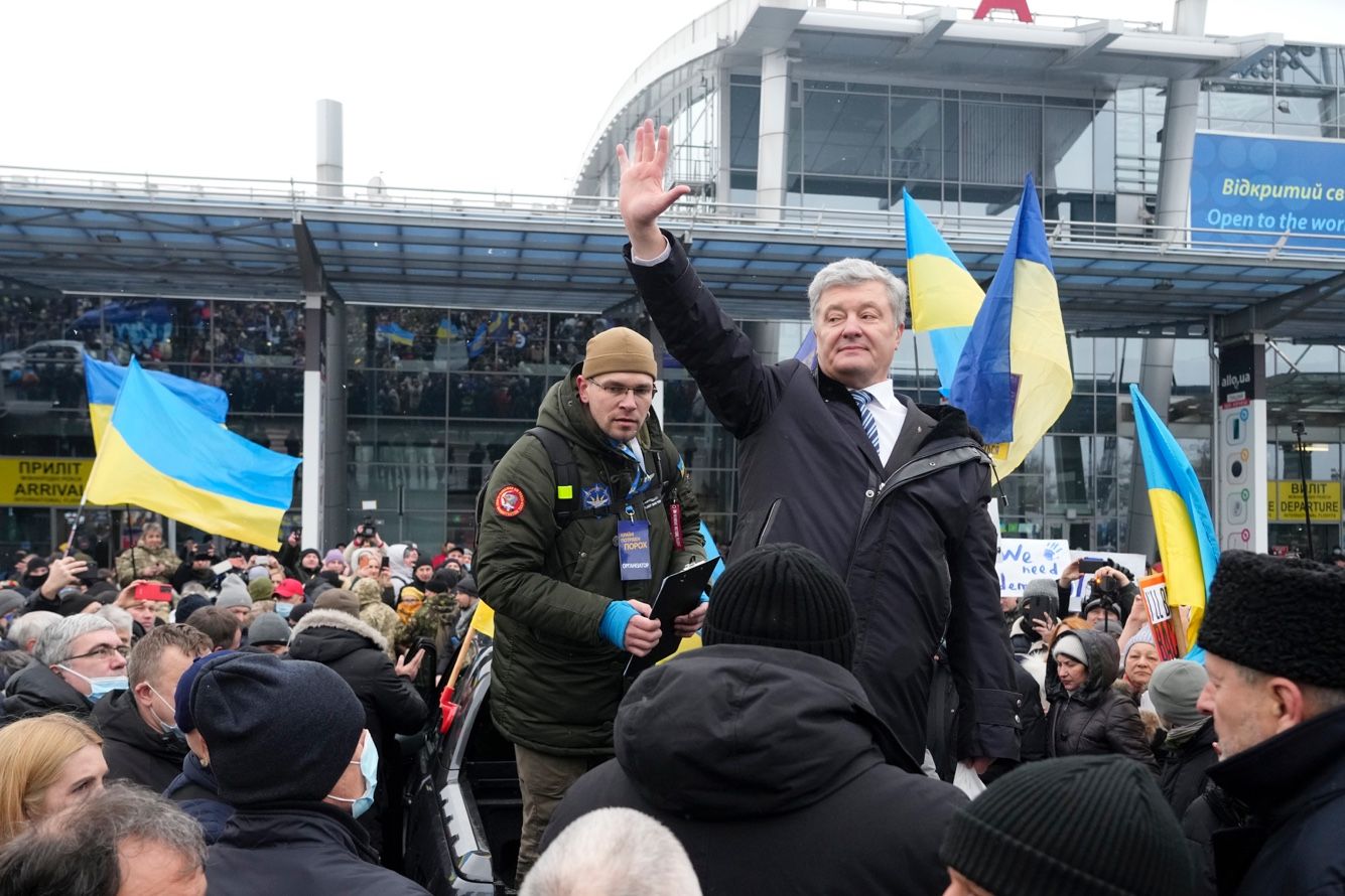 On the morning of Monday, January 17, Ukraine’s former president, lawmaker Petro Poroshenko, arrived in Kyiv after spending nearly a month abroad. An estimated 3,000–4,000 people met him at Kyiv’s Zhuliany Airport; some of his supporters carried Ukrainian flags and posters with pro-Poroshenko slogans. At passport control, Poroshenko was met by officials from Ukraine’s State Investigation Bureau. His passport was taken away for around 15 minutes, but then returned to him. The state investigators attempted to serve Poroshenko with a subpoena but he refused to take the document. Poroshenko then proceeded to hold an impromptu rally, addressing his supporters gathered outside the airport and urging them to support him in court.