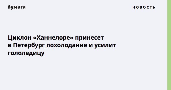 «Сегодня синоптическая ситуация будет представлена северной периферией циклонического вихря, врывающегося с центральную часть Европейской России и названного нашими немецкими коллегами „Ханнелоре“ (Hannelore). Он сделает погоду преимущественно облачной, местами пройдет небольшой снег и усилится ветер, на дорогах и тротуарах образуется гололедица, а температурный фон будет постепенно понижаться», — написал он в фейсбуке.