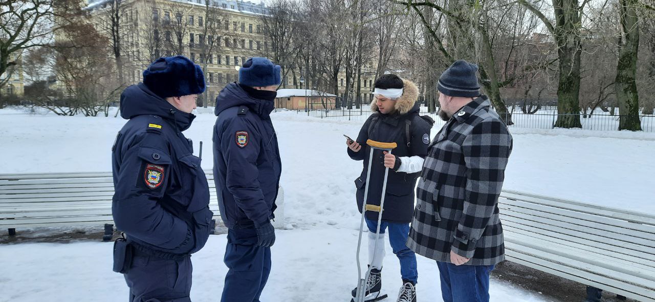 В Петербурге полиция задержала четверых активистов, устроивших акцию протеста из-за некачественной уборки снега и льда на улицах города. Об этом редакции Север.Реалии рассказал активист Красимир Врански. Он сам, Ярослав Костров, Алексей Никонов и Константин Хрщанович надели коньки и с костылями в руках пытались добраться до Смольного.