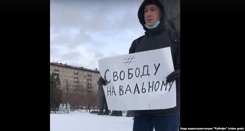 В Новосибирске активист Виктор Сорокин проводит одиночный пикет в поддержку политика Алексея Навального. Позже к нему присоединился еще один пикетчик. Прямой эфир с пикета транслирует группа "РуИнфо" в соцсети "ВКонтакте". Ровно год назад оппозиционер вернулся в Россию, а сейчас находится в заключении.