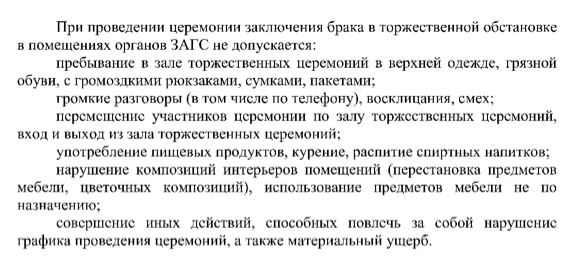 Управление записи актов гражданского состояния (ЗАГС) Ростовской области запретило шуметь и смеяться во время церемонии бракосочетания. Постановление опубликовано на официальном портале правовой информации региона.