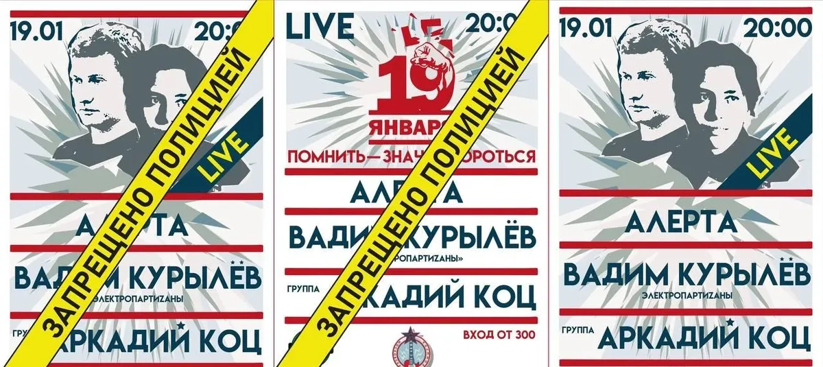 На 19 января запланировано выступление групп «Аркадий Коц», «Алерта» и Вадима Курылева («Электропартиzаны»), приуроченное к годовщине убийства неонацистами адвоката Станислава Маркелова и журналистки «Новой газеты» Анастасии Бабуровой. Концерт перенесли в Сахаровский центр*.