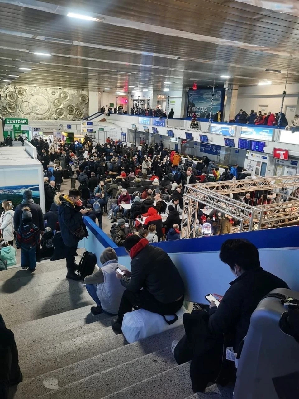 Впрочем, добраться до Мурманска — полдела. Снегопад на сутки парализовал работу аэропорта Мурманска. Шесть рейсов были отменены, 11 — задержаны на много часов. В итоге к открытию сообщения на аэровокзале скопилось громадное число мечтающих вылететь.