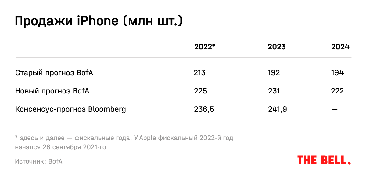 В JPMorgan в декабре также улучшили прогноз по продажам iPhone в фискальном 2022 году с 246 до 250 млн устройств — благодаря более высокому, чем ожидалось ранее, спросу на IPhone 13.