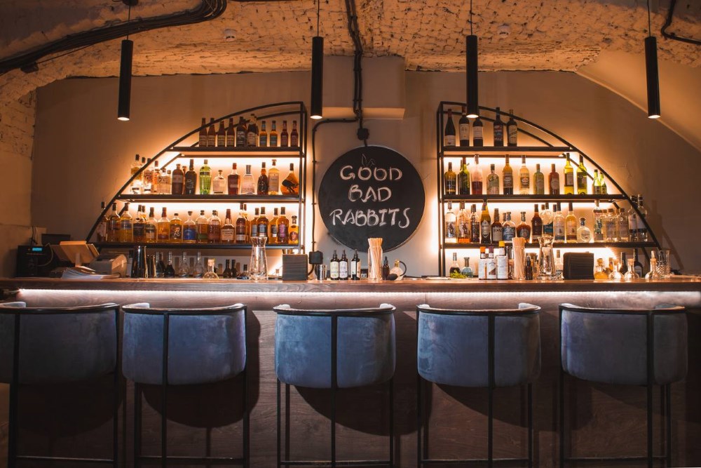 Good Bad Rabbits занимает два зала: в одном находится длинная барная стойка, во втором — камин. Более подробную информацию можно найти в инстаграме заведения.