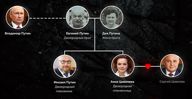 Жена губернатора Кемеровской области Сергея Цивилева Анна вероятно является двоюродной племянницей президента России Владимира Путина. Об этом сообщает "Агентство" ("Проект" объявлен нежелательной организацией, его журналисты признаны в РФ иноагентами). Девичья фамилия Анны Цивилевой совпадает с фамилией главы государства. Этим родством журналисты объясняют высокодоходный бизнес Цивилевых и тот факт, что после смертельного взрыва на шахте Листвяжная к губернатору не было никаких претензий со стороны федеральных властей.