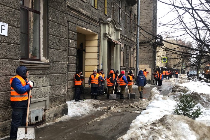 Активность коммунальных служб в четверг заметили и в Адмиралтейском районе, сообщает «Фонтанка». По информации издания, группа людей с лопатами чистила дворы на Гороховой улице. Оказалось, что убирать снег и наледь вышли не коммунальщики, а сотрудники центра реабилитации инвалидов, которые заявили, что подключились к этой работе добровольно. Бюджетников привлекли к зимней уборке еще по нескольким адресам, сообщает издание со ссылкой на собственные источники.