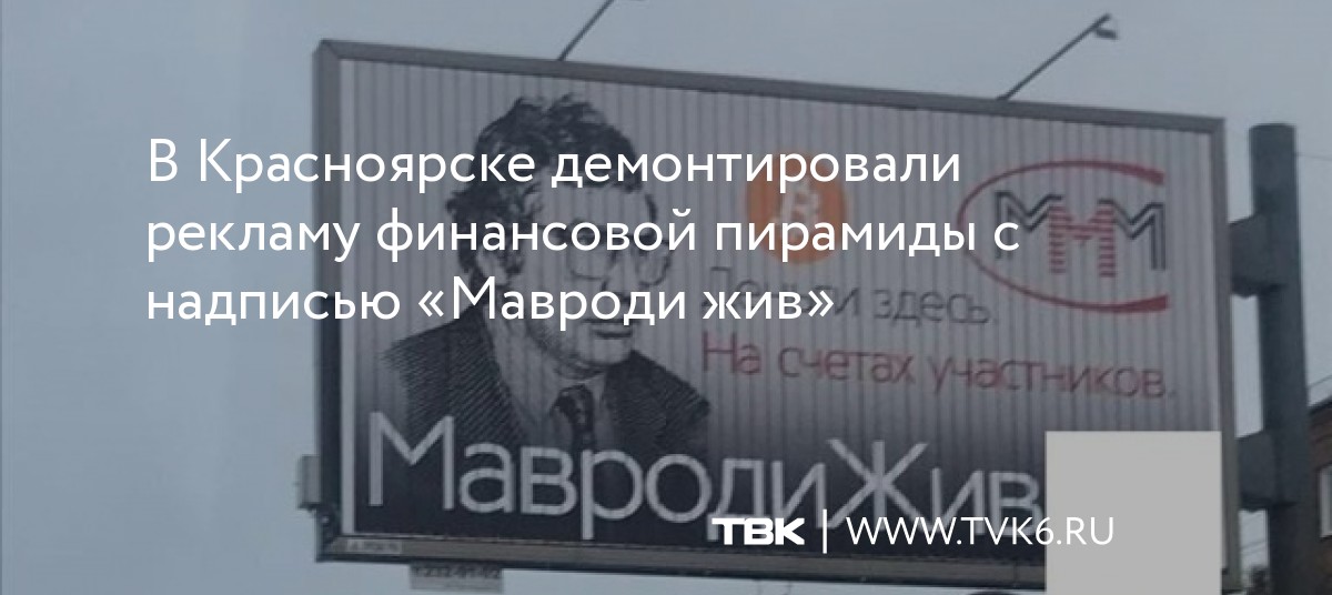 В Красноярске демонтировали рекламу финансовой пирамиды с надписью «Мавроди жив»