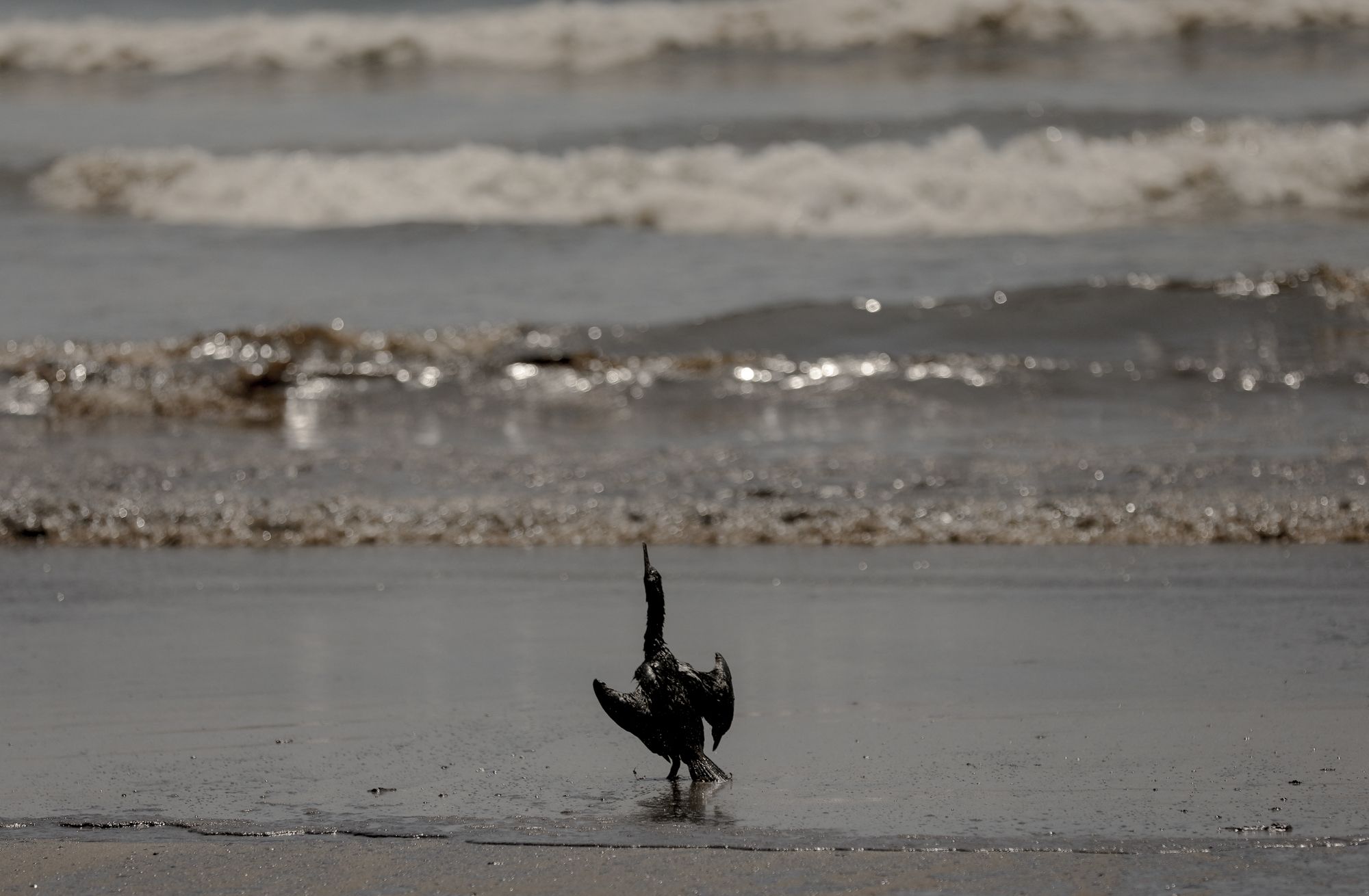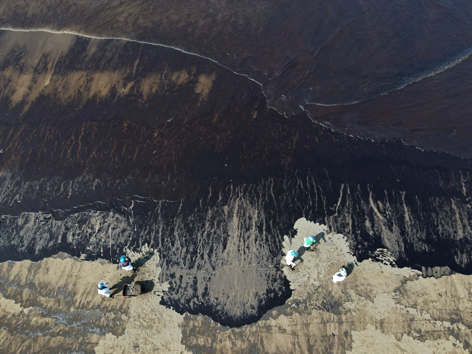 Цунами, вызванное извержением тихоокеанского подводного вулкана Хунга-Тонга-Хунга-Хаапай в архипелаге Тонга, 15 января привело к разливу нефти при разгрузке танкера, находившегося к северу от Лимы, столицы Перу. В океан вылилось около шести тысяч баррелей нефти, что нанесло ущерб сотням семей рыбаков и «поставило под угрозу флору и фауну в двух заповедных зонах», заявил МИД страны. Общая площадь загрязнения составила 1,7 миллионов квадратных метров на суше и 1,2 миллиона на поверхности океана. Правительство охарактеризовало произошедшее как «худшую экологическую катастрофу» в истории Лимы и потребовало возмещения ущерба от крупнейшей в Латинской Америке нефтегазовой компании Repsol. Вот как выглядят пляжи около Лимы после катастрофы.