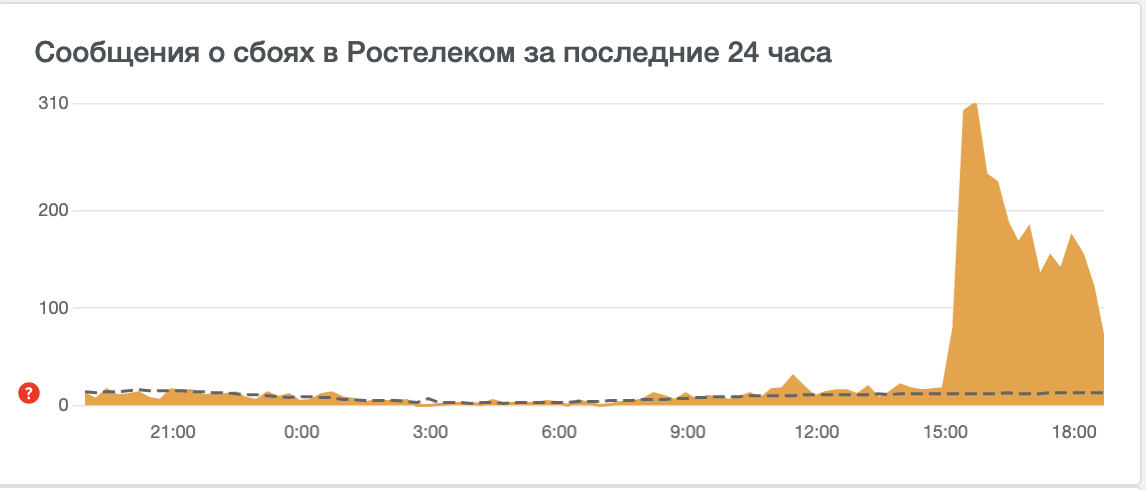 Проблемы в работе провайдера начались около трех часов дня, сообщают участники Клуба друзей «Бумаги». Пик на сайте downdetector.ru также говорит о том, что большинство жалоб на работу провайдера начали приходить после 15 часов.