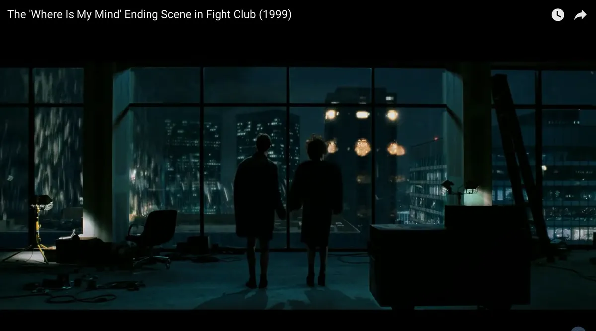 В оригинальной картине 1999 года главный герой (Эдвард Нортон) в конце убивает свое альтер-эго Тайлера Дёрдена (Брэд Питт) и вместе с Марлой Сингер (Хелена Бонэм Картер) наблюдает за зданиями, которые взрываются согласно экстремистскому плану «Разгром».
