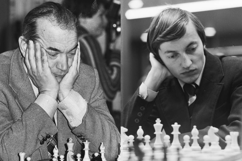 Слева: Виктор Корчной в январе 1978 г. Справа: Анатолий Карпов в 1977 г.
