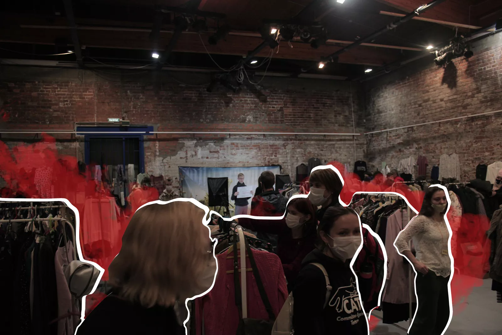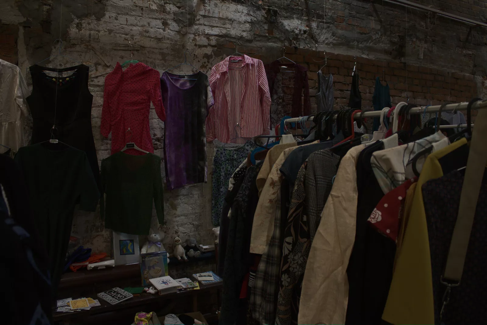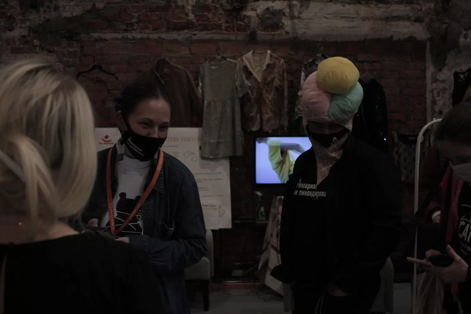 В помещении с кирпичными стенами, где 21 ноября проходит одна из инициатив центра — барахолка, — не так много людей. Возле стенда Мемориала крутится женщина в камуфляжной маске. Там раздают бесплатные стикеры, карточки и даже формочки для выпечки — всё это старый мерч. Новый разобрали ещё в первый день мероприятия. Волонтёр Андрей, студент юрфака МГУ, предлагает всем подписать петицию и письма солидарности в поддержку Мемориала. Женщина в маске берёт несколько стикеров, но отказывается где-либо подписываться. На все вопросы она отвечает: «Это бессмысленно».