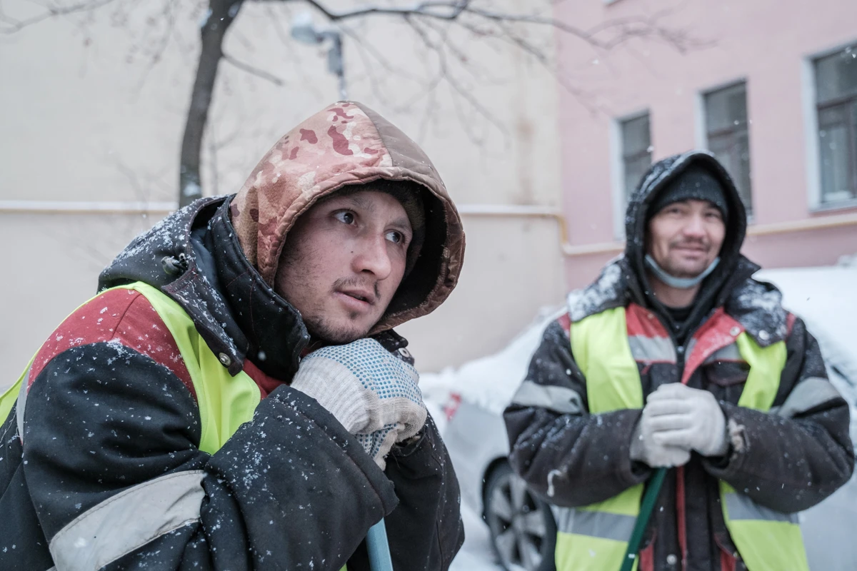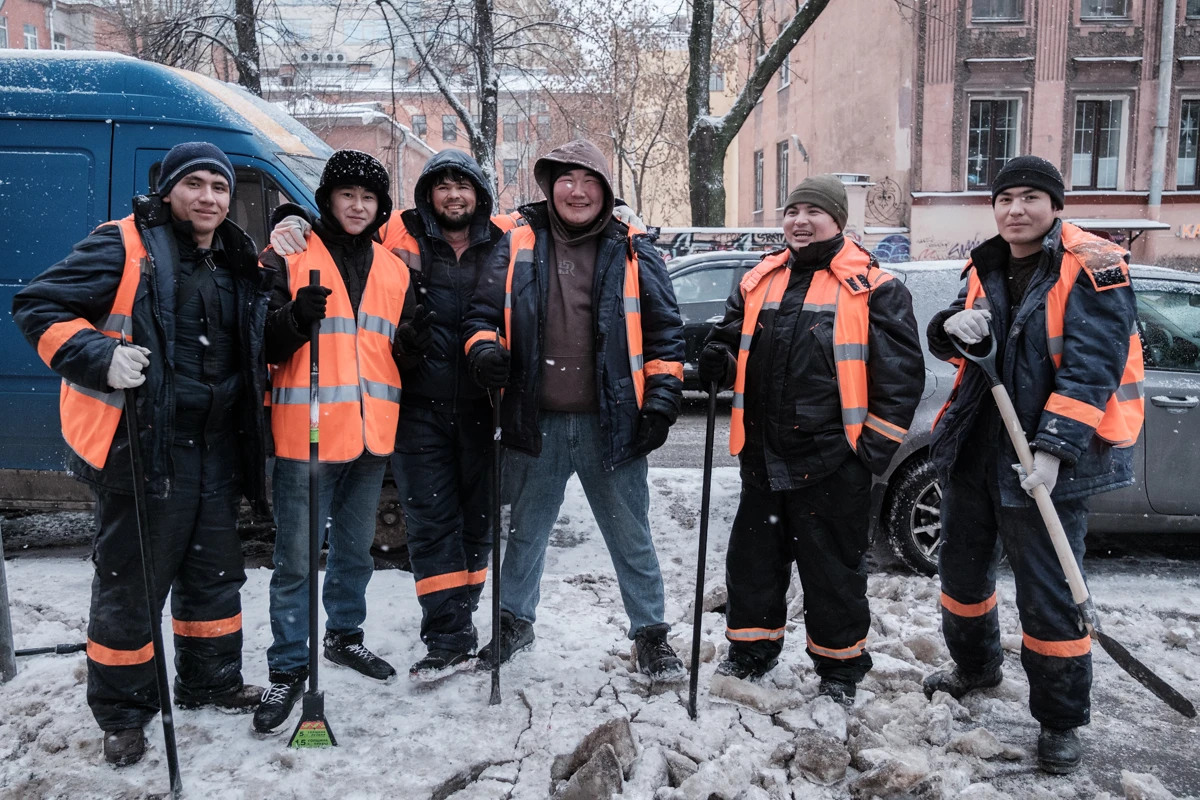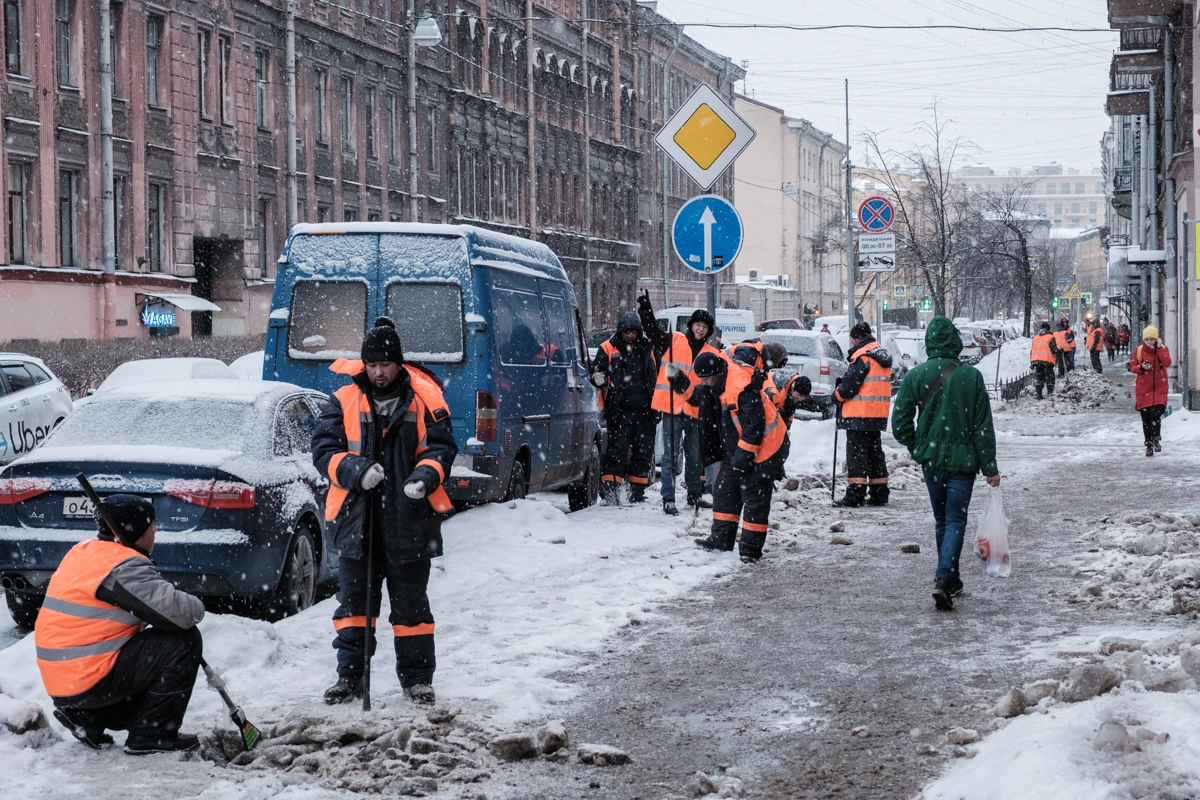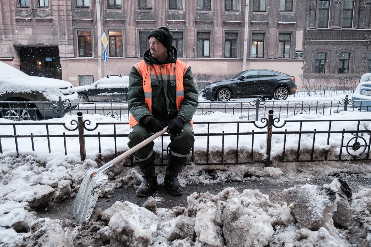 Ее слова невольно подтверждает Сергей — плиточник, который чистит снег недалеко от перекрестка. В Петербург он приехал на заработки из Беларуси. «Суббота и воскресенье у нас выходные, — рассказывает он. — Но начальство попросило городу помочь. Мы не отказались. Тут несколько бригад с новостроек «Солнечного города» на проспекте Ветеранов. Из разных фирм по несколько человек набрали. Уборка — вроде не наша работа, но сидеть выходные без работы неинтересно. Семью кормить надо, а эту работу оплачивают. Дадут, наверно, не меньше двух тысяч».