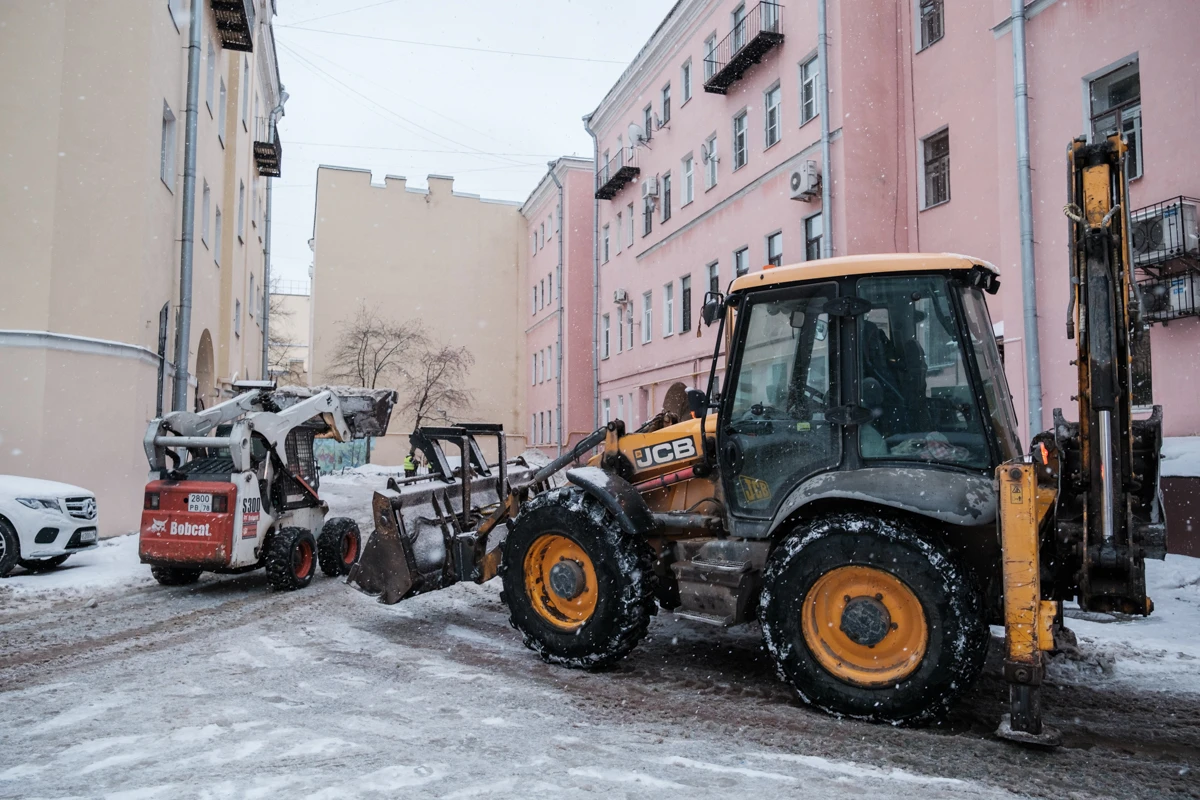 …Из арки дома по улице Правды, 2/13, доносится гул и скрежет железа об асфальт. Во дворе полтора десятка мужчин в кислотно-зеленых жилетах колют лед и сгребают его в ковши двух тракторов, которые перекидывают собранное в самосвал.