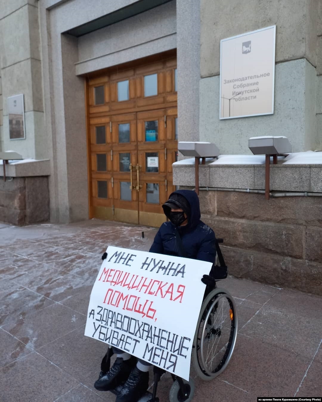 Житель Ангарска Павел Курамшин устроил одиночный пикет у здания правительства Иркутской области. Чиновников, собравшихся на заседание по оптимизации здравоохранения области, он попросил помочь с госпитализацией - после имплантации баклофеновой помпы ему нужна новая операция, но по ОМС клиника Мешалкина согласна его принять не раньше, чем через год. Губернатор области взял у него документы - сейчас они вновь оказались в ангарской поликлинике, сообщил редакции Сибирь.Реалии Курамшин.